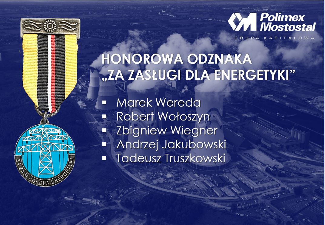 Decyzją Ministra Energii z 3 września 2019 r. na wniosek Polimex Mostostal, za zasługi położone na rzecz rozwoju energetyki odznaką honorową „Za Zasługi dla Energetyki" zostało wyróżnionych pięciu pracowników Grupy Kapitałowej Polimex Mostostal.